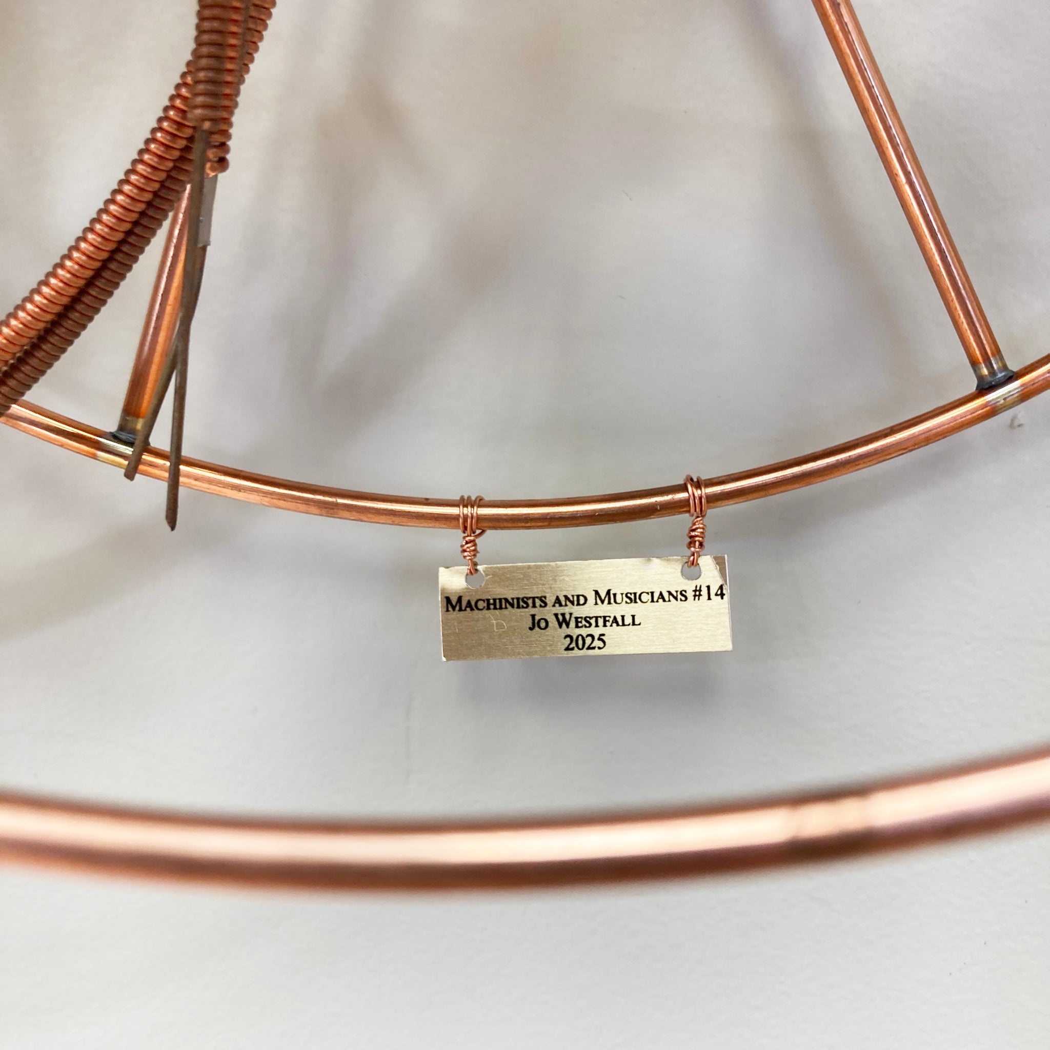 Woven assemblage made with three welding spools and piano strings. Sculpture is held together with the tension of the woven wire - no adhesives or hardware were used in assembly.  (Please excuse the outlets in the main image)
